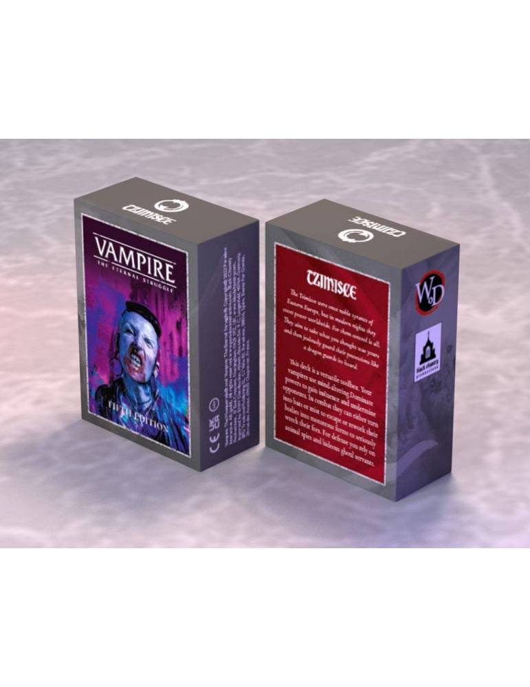 This is a deck with 77 library cards and 12 crypt cards, ready for play out of the box or customizable with other Vampire: The Eternal Struggle cards. Each player needs a deck to play.
